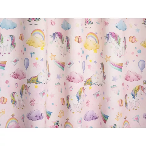 Varázsold a gyerekszobát igazi mesebeli hellyé a Laguna Rainbow gyerekmintás dekorfüggönnyel! A 140 cm széles függöny szivárványos, egyszarvús és lufis mintái garantáltan elvarázsolják a kicsiket. Tökéletes választás, ha játékos, lányos hangulatot szeretnél teremteni, amely minden nap mosolyt csal az arcokra. Kínálatunkban hozzá passzoló fényáteresztő függönyt is találsz.